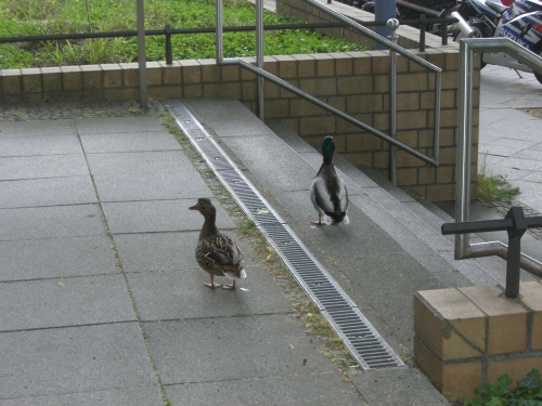 Und direkt vor dem Dienstgebäude begegnen mir diese Herrschaften. Was sie wenige Sekunden vorher gemacht haben, konnte ich nur aus der Ferne beobachten...