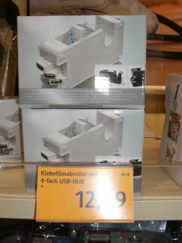 Und man hat gleich noch Klebefilm griffbereit für alle Eventualitäten. Denn es gibt schließlich Leute, die alles, aber auch wirklich alles, zunächst mal damit versuchen zu befestigen.