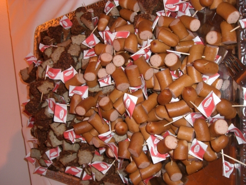 Seit drei Jahren bekommen wir nun regelmäßig eine Einladung zum Saale-Unstrut-Jungweinfest in der Landesvertretung von Sachsen-Anhalt. Verschiedene Weingüter präsentieren ihre neuen Weine, ein Büffet steht auch bereit. Nur: Seit Jahren sind Käse, Quiche, Zwiebelkuchen, Brot und Weintrauben immer sofort verschwunden, was übrig bleibt, sind kalte Würstchen auf Spießen und kleingeschnittener Hackbraten, ebenfalls aufgespießt. Lernen die eigentlich nichts daraus oder warum fahren sie das Zeug jedes Mal wieder in Massen auf?