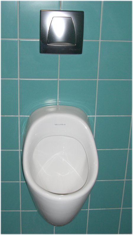 Klärt sich aber bei näherem Hinsehen: Das Teil ist knapp über dem Boden angebracht, also wohl gedacht für die kleinen Jungs, die mit ihren Mamis herkommen.